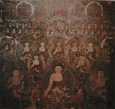 선운사 대웅보전 삼세불회도 후불벽화(선운사 사리탑모형) : 삼세불회도 후불탱화