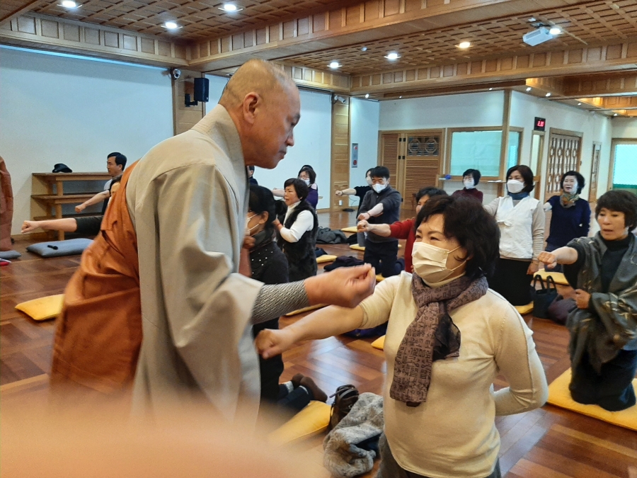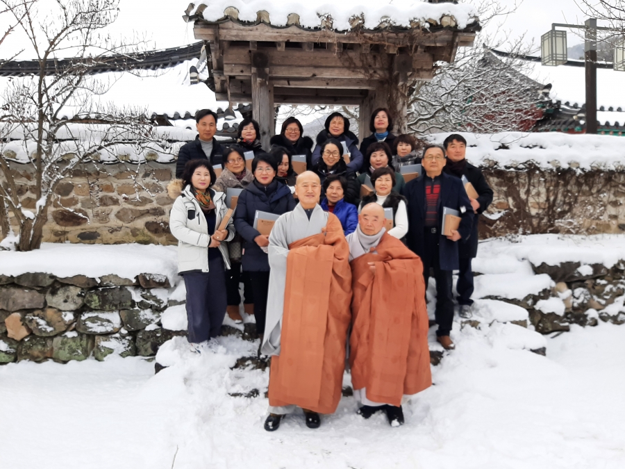선운사 2기 불교대학 졸업예정자 16명이 혜수스님을 계사로 모시고 5계 수계식이 2023년 1월 28일 오후2시 성보박물관에서 있었습니다.