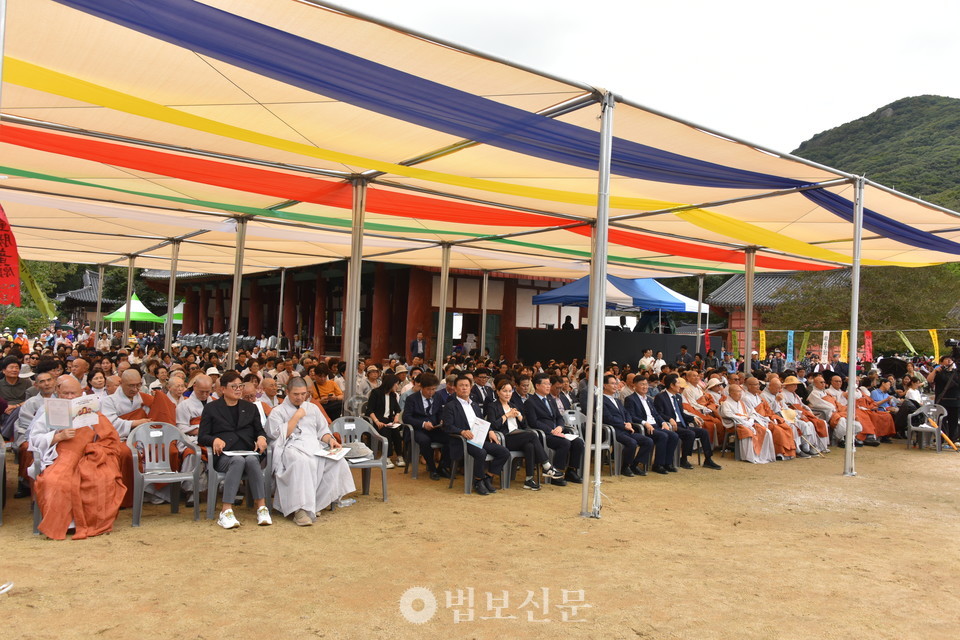 20일 오후 봉행된 ‘삼신삼세불 괘불 봉안법회’는 경우 스님 증명법사의 점안식과 범종 10타로 시작됐다. 대흥사 조실 보선 스님이 법사로 법문을 전했으며, 원로와 중앙종회의원 스님 80여 명을 비롯해 사부대중 2000여 명이 동참했다. 정청래 더불어민주당 대표, 김관영 전북특별자치도지사, 심덕섭 고창군수 등 정관계 인사도 함께해 축사를 전했다.