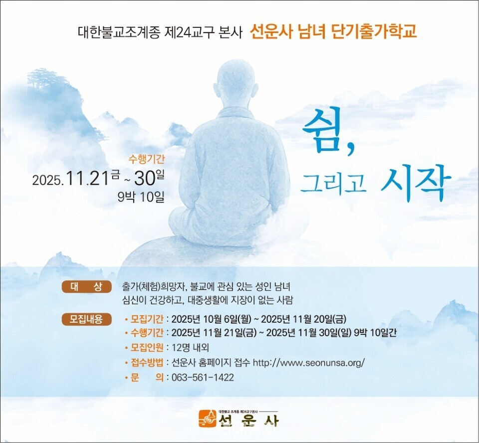 한편, 선운사는 교육·수행도량으로서의 역할을 강화하기 위해 앞으로도 매년 봄·가을 연 2회 단기출가학교를 정례 운영할 계획이다. 이를 통해 승가 인력 양성과 함께 청년세대와 일반 대중에게 자아 성찰과 내적 성장을 도모할 수 있는 장을 마련한다는 계획이다.